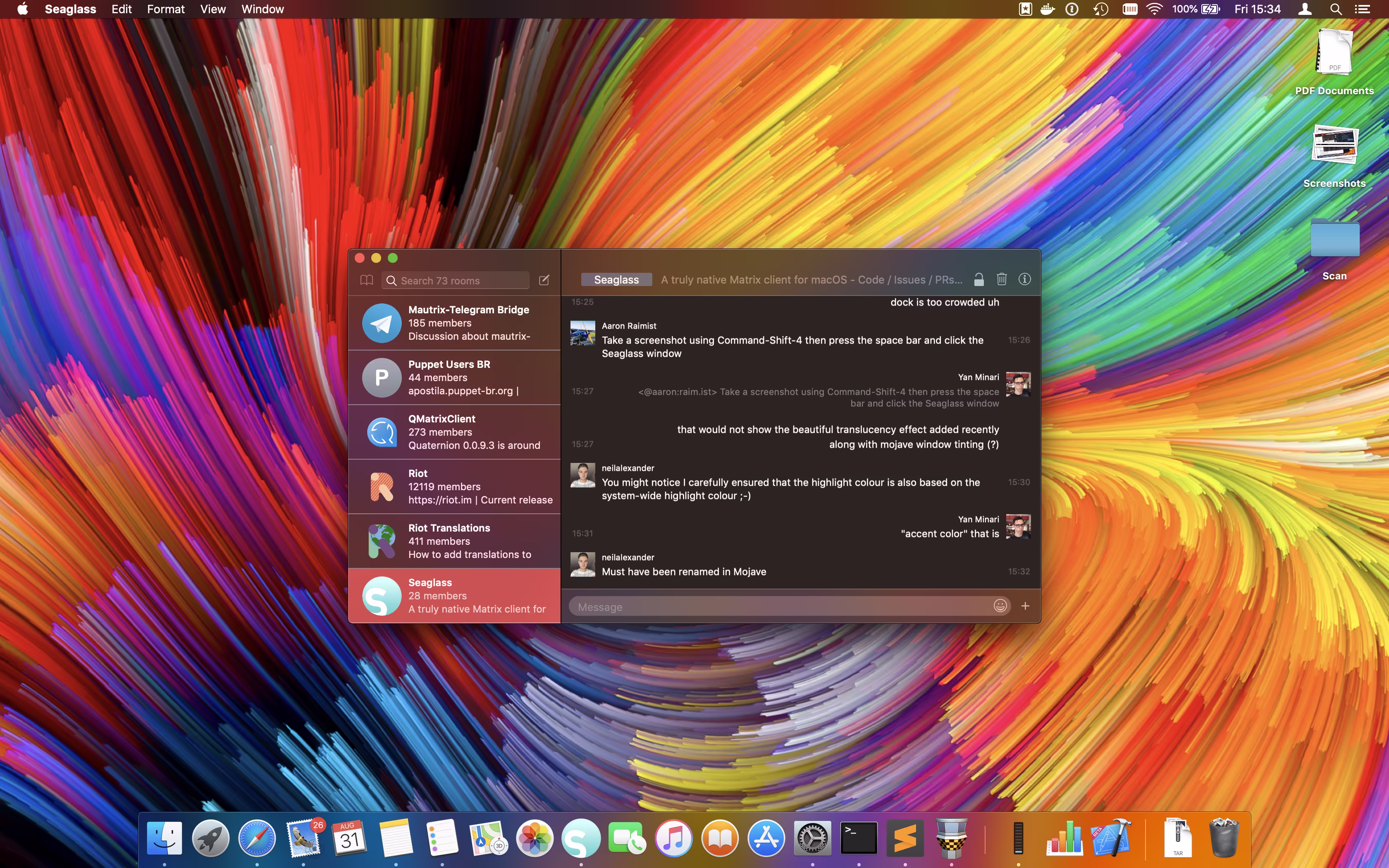 Seaglass now has some early support for inline images and attachments, and supports Quick Look. Also handles emotes and notices better. It also has version numbers now, various other little fixes and Aaron Raimist has been working on auto-update support.